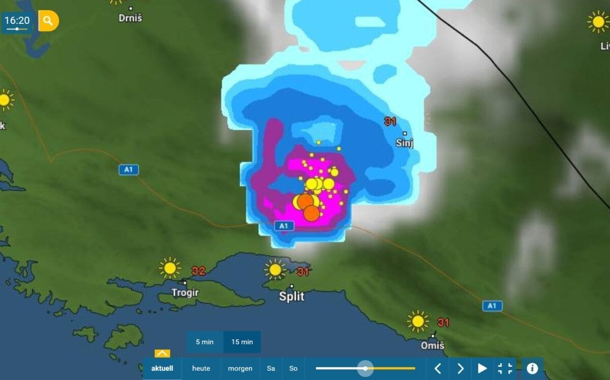 Dok u većem dijelu Dalmacije dan protječe u znaku pretežno sunčanog vremena, popodne je u dijelu Zagore došlo do jačeg razvoja oblaka. Područje između Kozjaka i Svilaje zahvatilo je grmljavinsko nevrijeme s kišom, pljuskovima, a ponegdje i tučom.