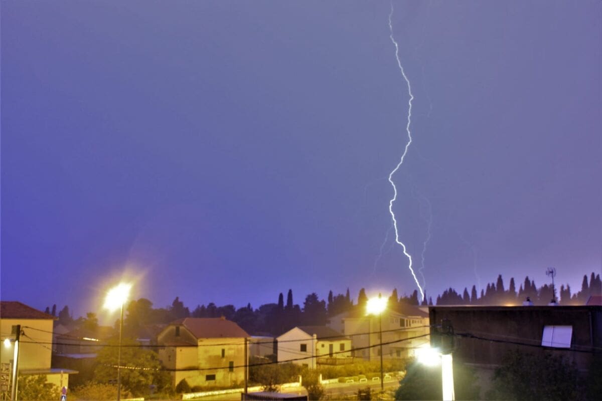 Nova ciklona od noćas intenzivno djeluje na vrijeme na cijelom Jadranu. Protekle noći jako grmljavinsko nevrijeme zahvatilo je područje Kaštela gdje je u kratkom razdoblju palo preko 40 litara kiše po kvadratnom metru.