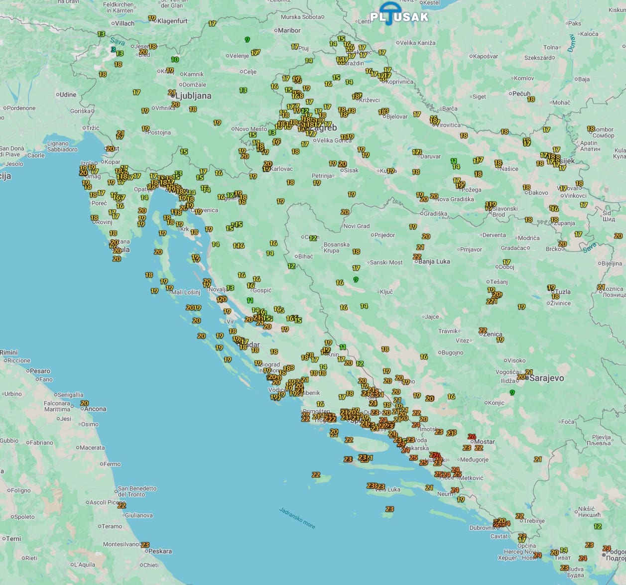 Do ponoći suho se zadržalo samo južnije od Makarske, no novi kišni i grmljavinski oblaci stvaraju se iznad sjevernog i srednjeg Jadrana, što će donijeti nestabilnu noć. Stabilizacije vremena slijedi u utorak prijepodne.