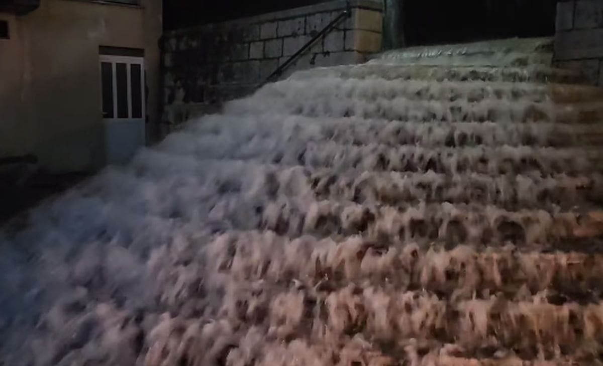 U Veloj Luci se niz skaline crkve sv. Josipa spušta ogromna količina vode, a video je podijelio Radio Vela Luka.