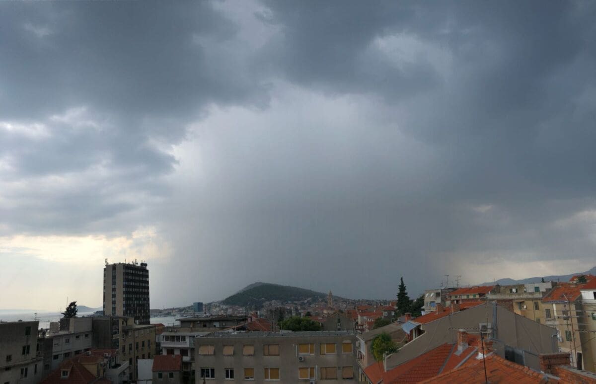 U Splitu je najviše kiše palo na zapadu grada, a tek pokoja kap na istoku. Temperature su se s pljuskovima spustile ponegdje i za desetak Celzijevih stupnjeva.