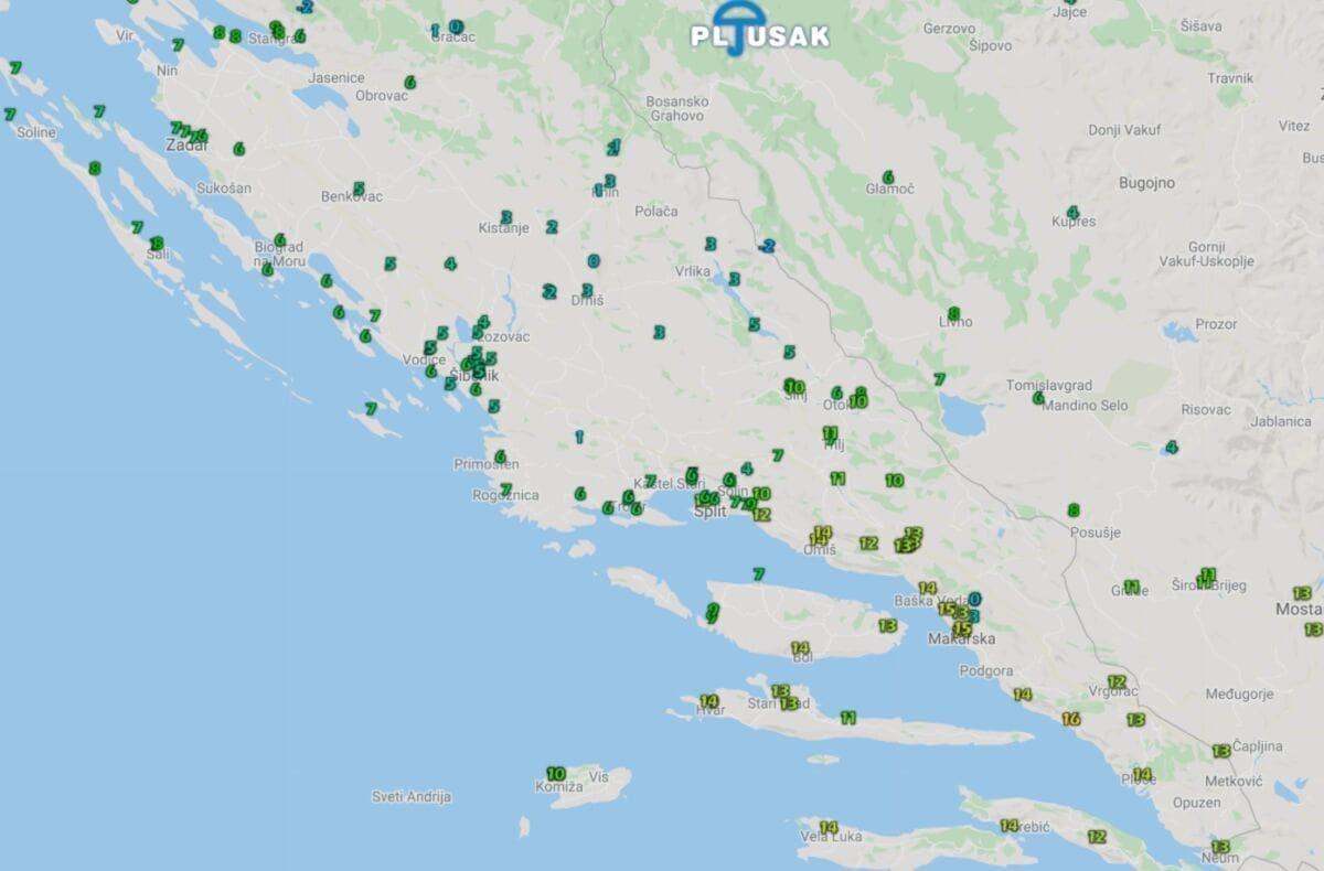 O padu temperature najbolje govori da je u Kaštel Gomilici temperatura zraka u 19:30 samo 4.9°C, Klisu 4°C, Split Spinut 6, Split Gripe 9°C.