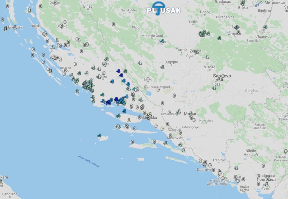 Hladna fronta oko 19:30 zahvatila je šire splitsko područje. Praćena je snažnim padom temperature zraka, kišom, pljuskovima s grmljavinom, a ponegdje i tučom.