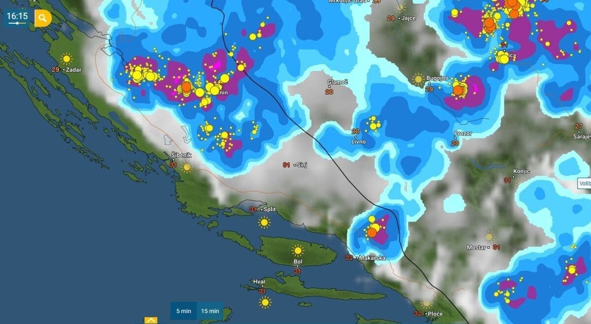 Petak je bio još jedan pravi ljetni dan u Dalmaciji. U većini predjela je bilo suho i pretežno sunčano, ali je u poslijepodnevnim satima došlo do lokalno pojačanog razvoja naoblake. Zbog toga je u dijelovima Dalmatinske zagore bilo pljuskova s grmljavinom.
