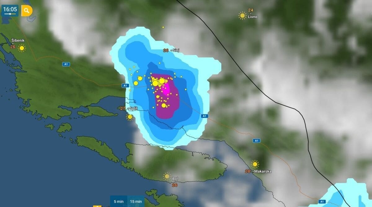 Iako je jasno da će glavnina ovog nevremena otići prema obali, u pravcu Omiša, novi grmljavinski oblaci koji se upravo stvaraju sa sjeverna strane Kozjaka mogli bi stići do Splita i donekle pokvariti feštu na Rivi gdje deseci tisuća ljudi dočekuju Vatrene.