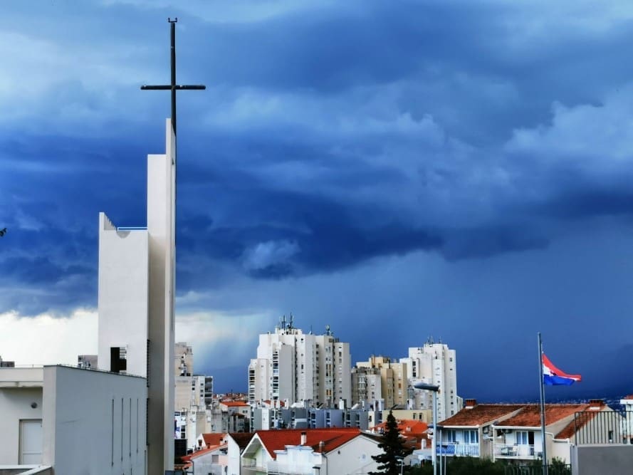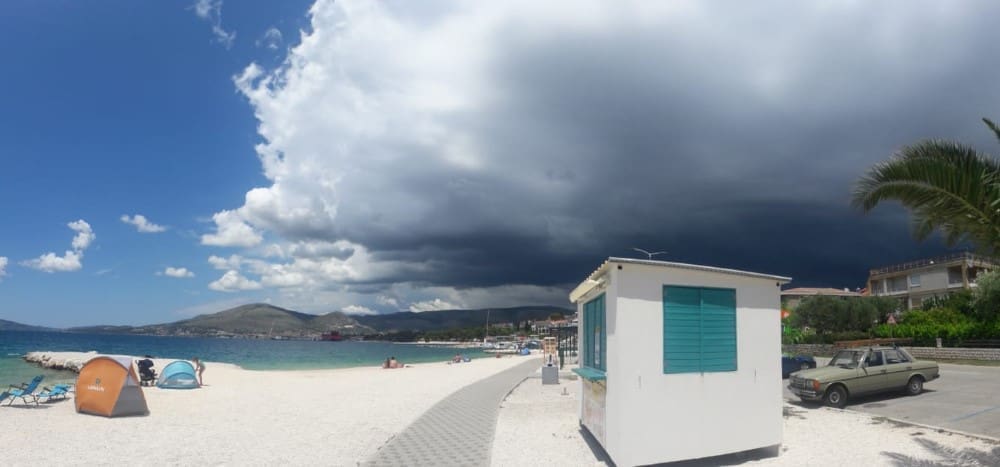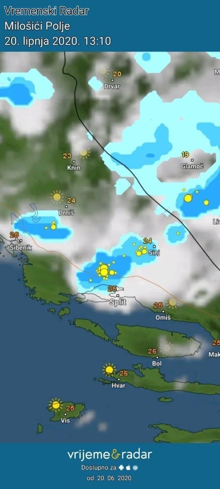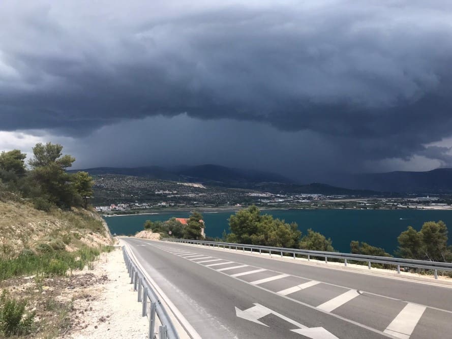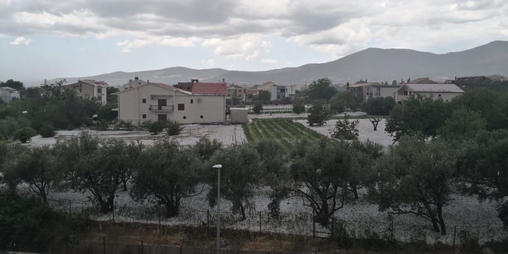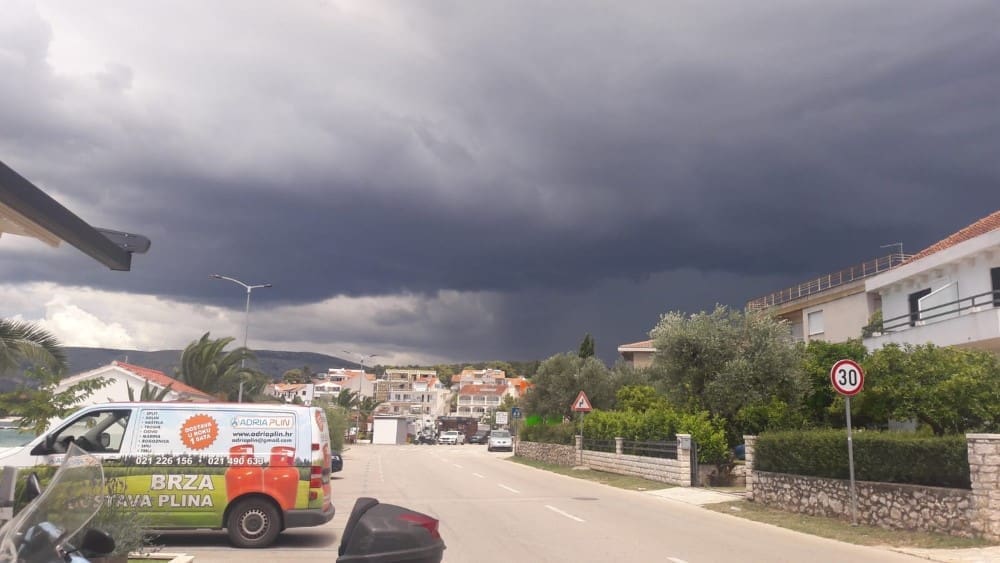 Oko 13:30 veliko nevrijeme s tučom zahvatilo je područje Kaštel Štafilića i zapadnog dijela Kaštela, a nevrijeme se postepeno širi i prema splitskom području gdje intezivno grmi.