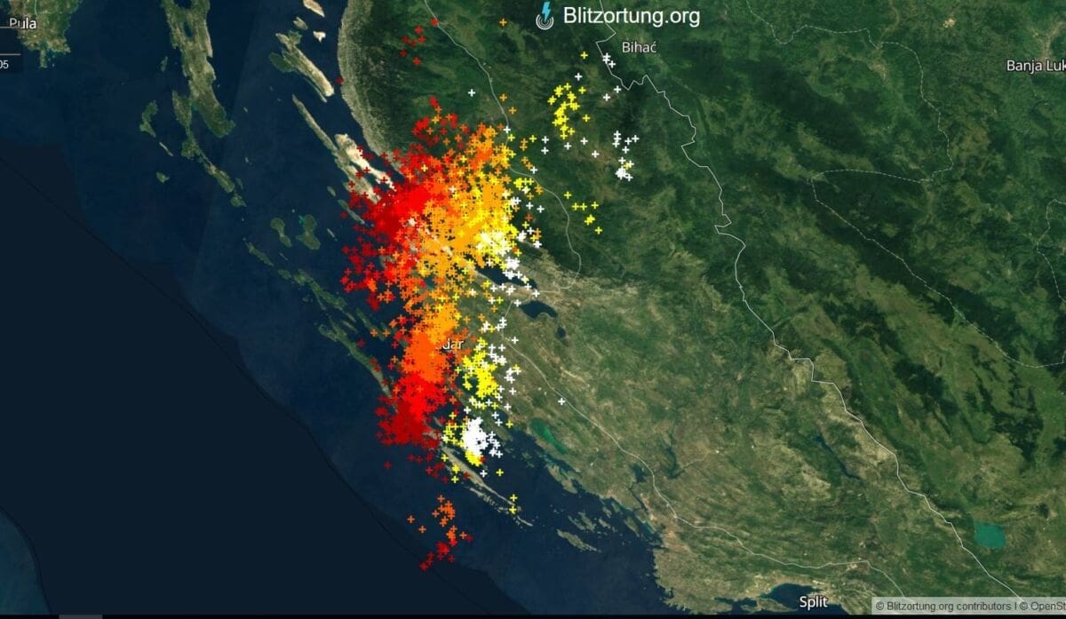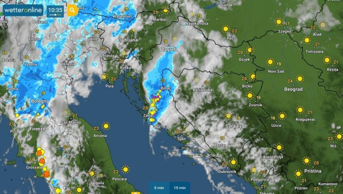 Sredozemna ciklona sve naglašenije djeluje na vrijeme na Jadranu. Iako je u srednjoj i južnoj Dalmaciji još suho i djelomično sunčano, u sjevernoj Dalmaciji je u prvom dijelu dana bilo mjestimice jakog grmljavinskog nevremena.