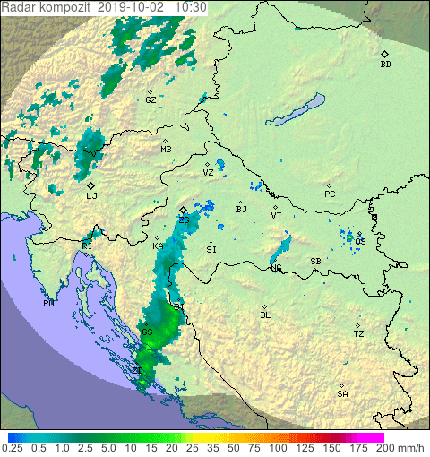 Grmljavinsko nevrijeme prema sredini dana pomiče se lagano na istok, palo da je iza 11 sati zahvatilo područje od Biograda na Moru, preko Benkovca, do Maslenice. I tamo se bilježe vrlo obilne oborine.