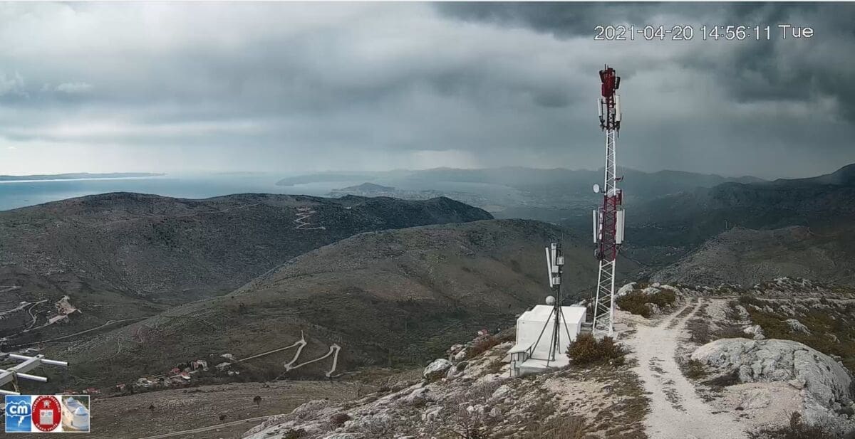 Pljuskova je bilo na širem sinjskom području, a na Dinari iznad 1600 metara bilo je i snijega. Pljuskovi su oko 15 sati zahvatili dio okolice Splita.