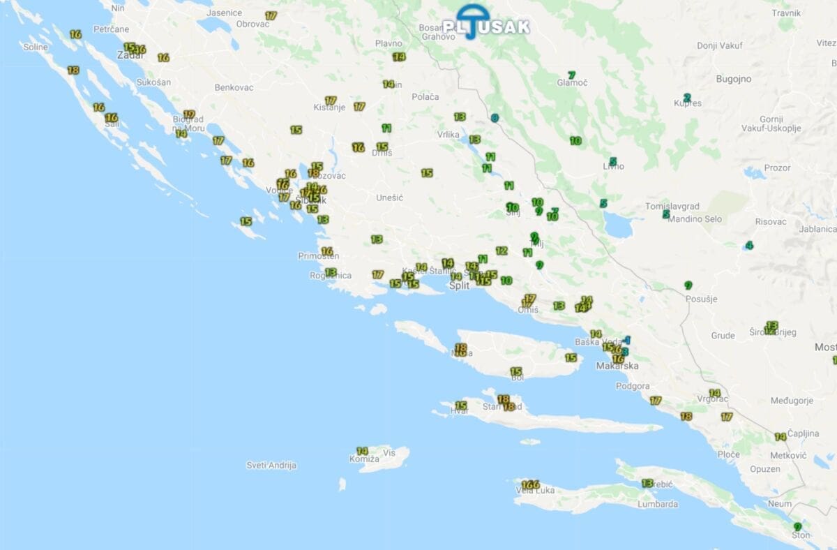 Najhladnije je na Dinari s 0°C i Biokovu (Sveti Jure) s -1 stupanj.