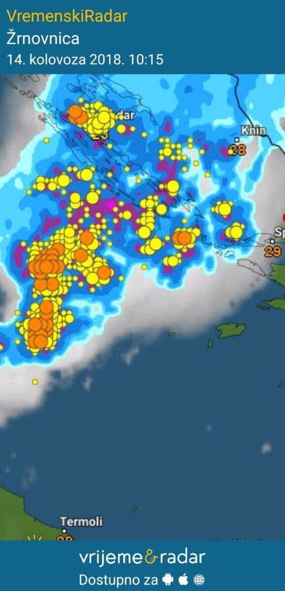 Prema podacima mreže postaja Pljusak.com do sada je najviše kiše palo na zadarskom području, preko 10 litara po metru kvadratnom, a spomenimo da je na krajnjem zapadu ponegdje palo i do 40 litara kiše po metru kvadratnom. Kiša je do 12 sati stigla sve do splitskog područja, pa tako cijelo šibensko i zadarsko područje ima pljuskove i grmljavinu.