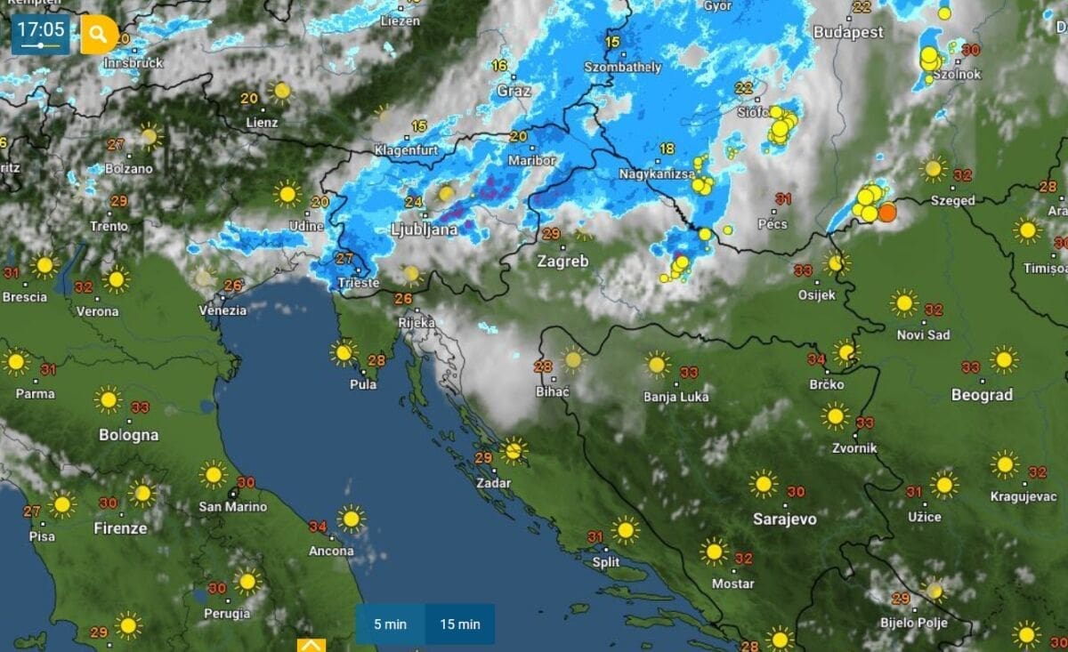 Na Jadranu prevladava sunčano i vruće, u Dalmaciji ponegdje i vrlo vruće. Oblaka ima mjestimice na sjevernom Jadranu. Hladna fronta proširit će se i na Slavoniju, a u Dalmaciji će se zadržati suho i vruće.