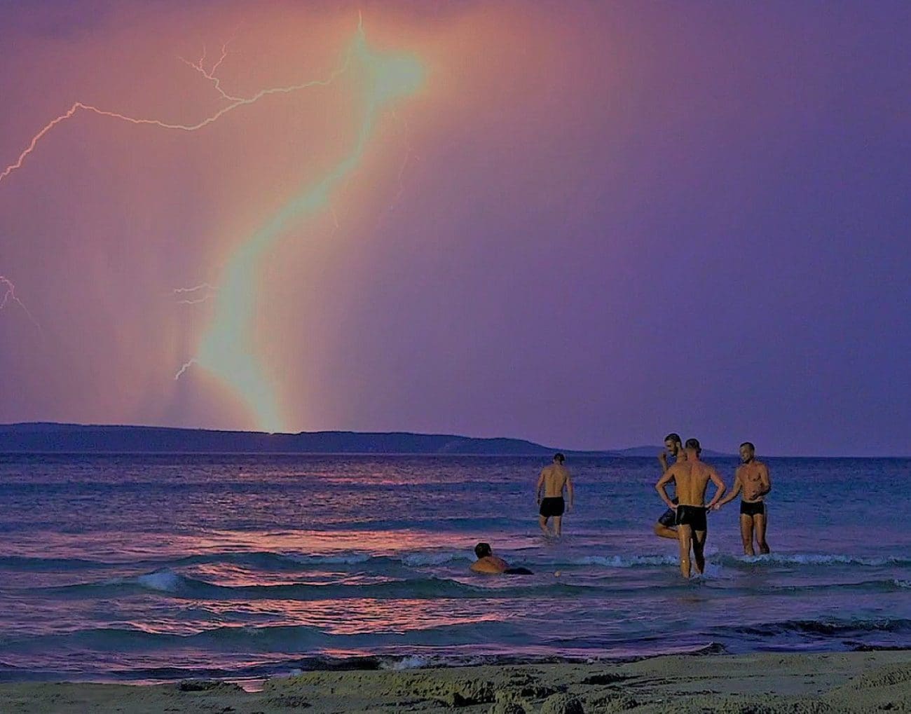 U pogledu na munje mogli su uživati i piciginaši na splitskoj plaži Bačvice. Nema sumnje da je ovakva kulisa bila poseban motiv za ranovečernju partiju popularne ljetne igre.
