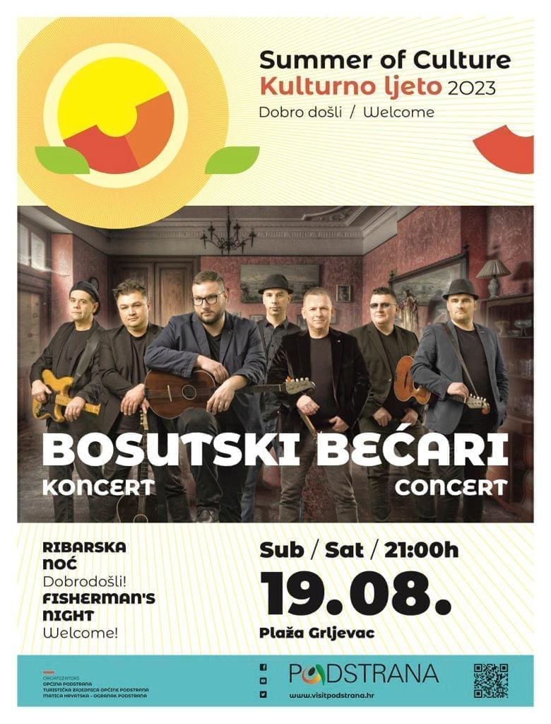 Popularni tamburaški sastav ‘Bosutski bećari’ održat će koncert u sklopu ribarske noći 19. kolovoza u 21:00h na plaži u Grljevcu.