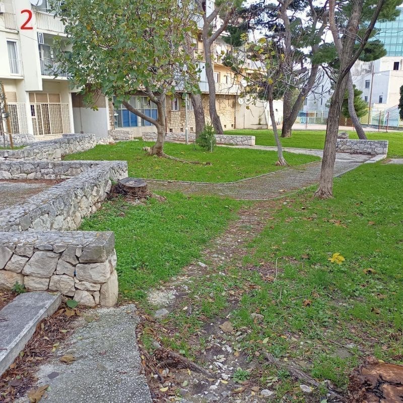 "1) Naručena projektna dokumentacija za uređenje prostora sa južne strane Gradske knjižnice Marka Marulića, podružnice na Mejama (fotografije 1-4), kako bi kotar napokon dobio centralno mjesto kulturnog života (za promocije knjiga, ljetno kino i sl.).