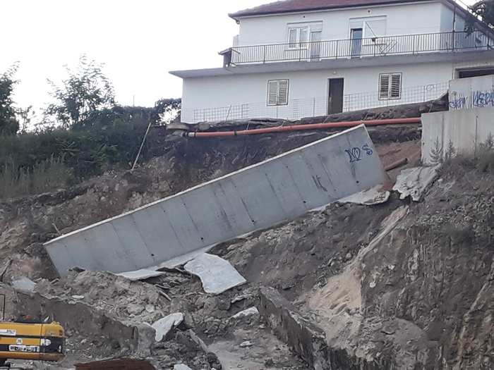 Portal Sinjska rera je objavio fotografije potpornog zida koji je pao na gradilištu koje se nalazi ispod Starog grada.
