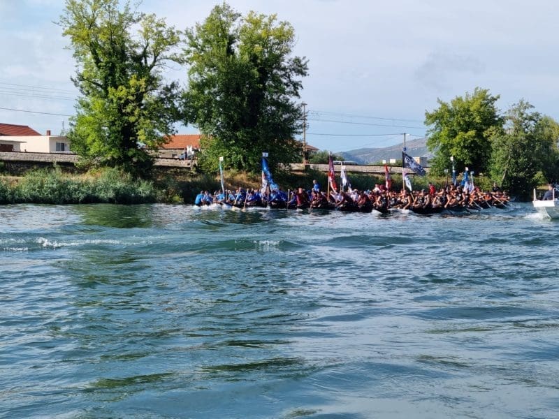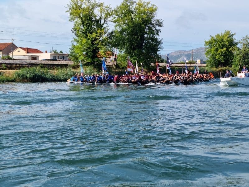 Kišno poslijepodne i tmurni oblaci koji su se u subotu nadvili i na Neretvansku dolinu nisu spriječili trideset i tri natjecateljske lađarske ekipe da ukrste svoja vesla i krenu na put dug 22,5 kilometra Neretvom do Ploča u tradicijskim neretvanskim lađama.