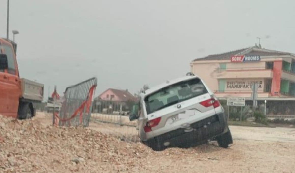 Ipak, zbog nemarnosti se događaju nezgode. Vozač je, naime, svojim vozilom 'uletio' u rupu na prometnici i tako je ostao zaglavljen.