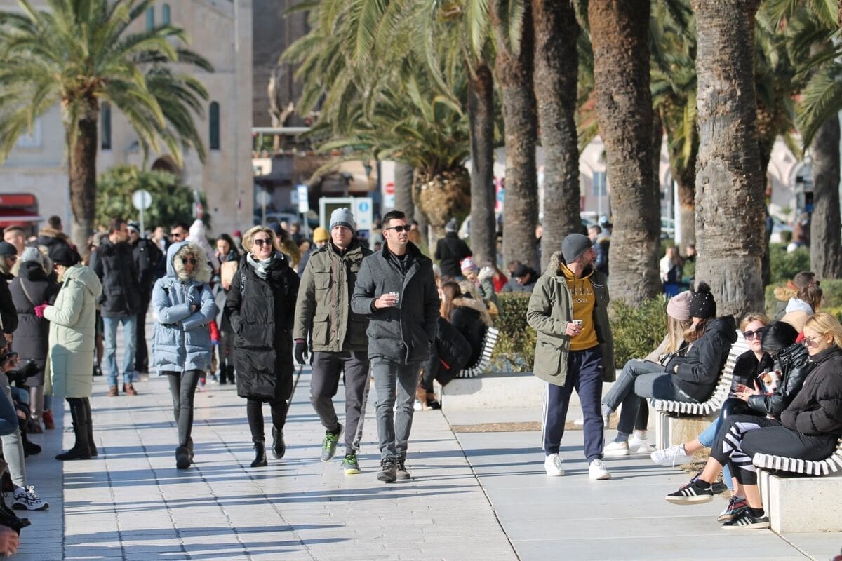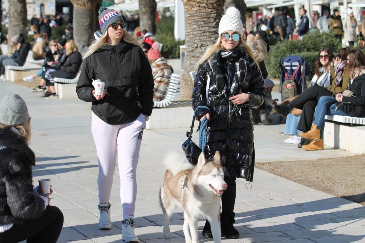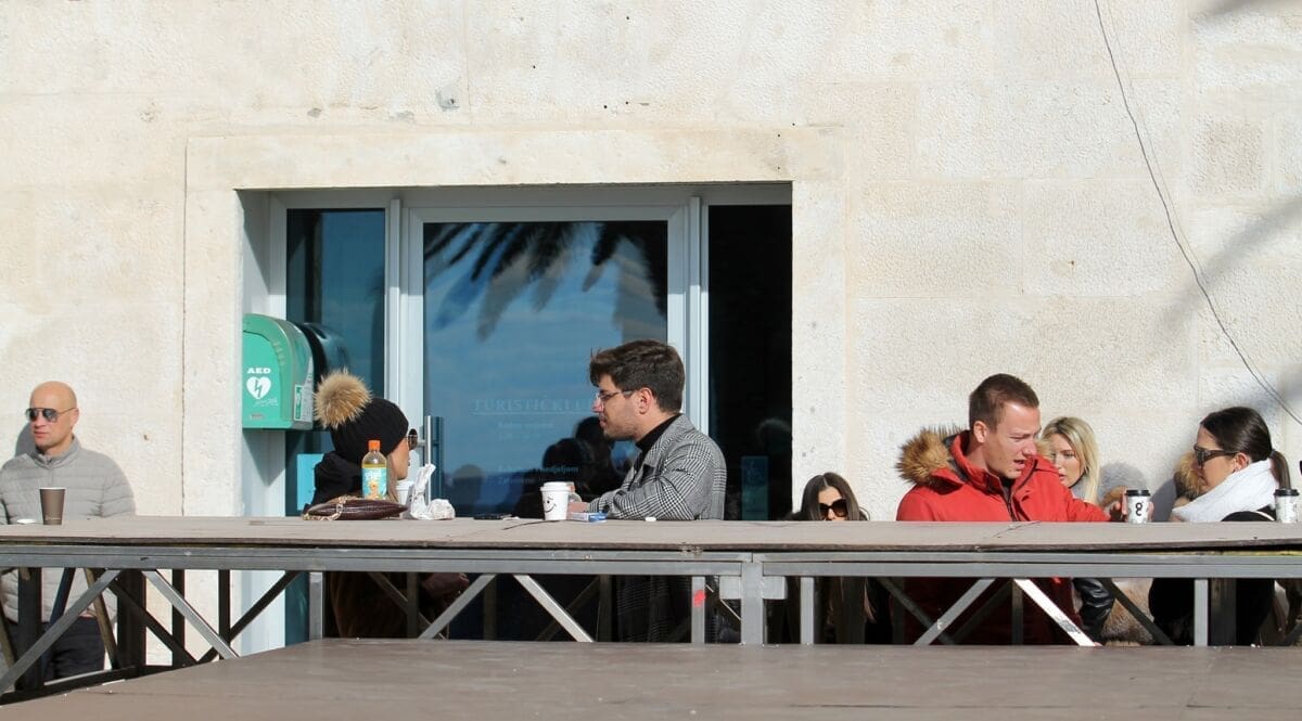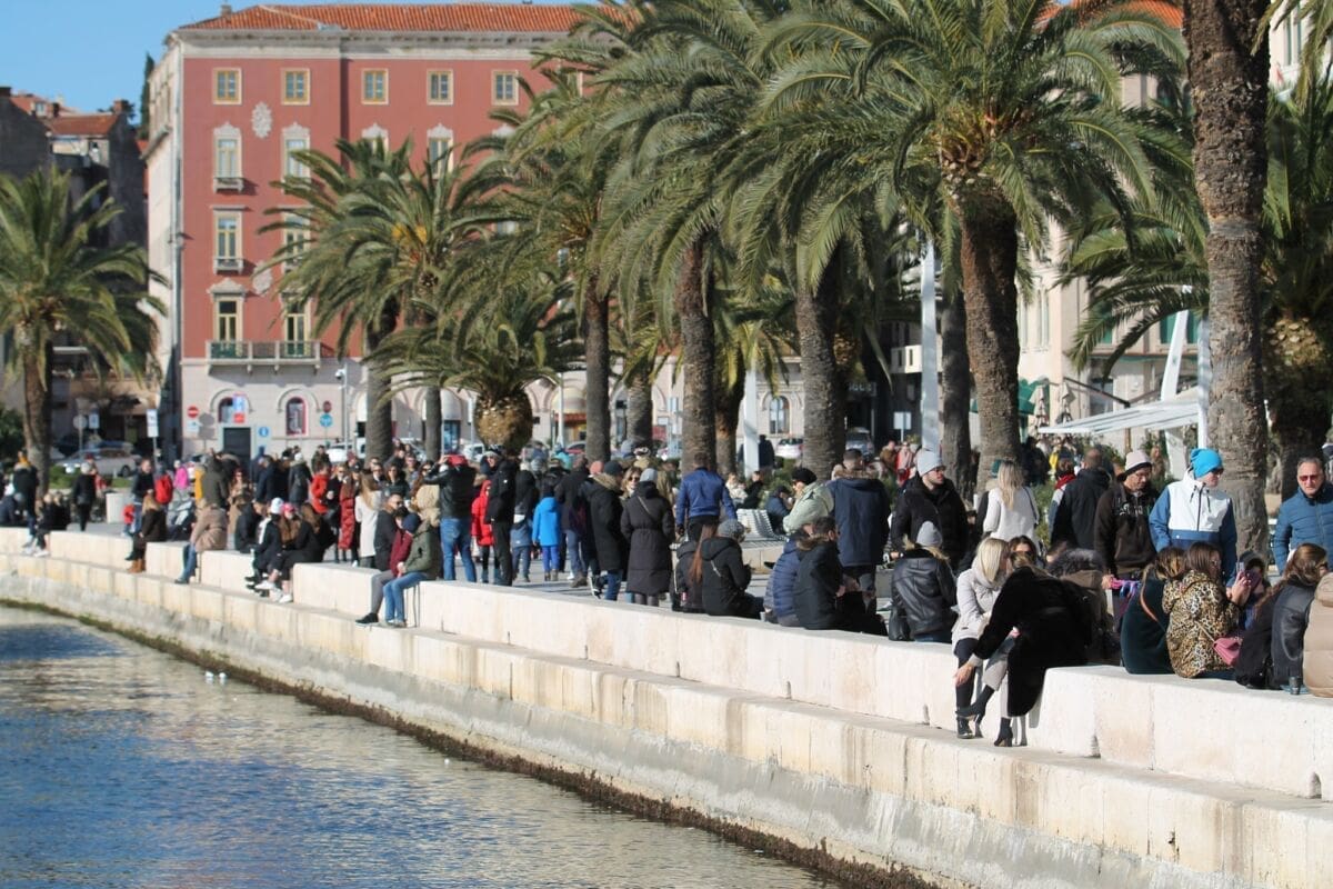 Splitska Riva i danas je bila puna ljudi, unatoč buri i niskim temperaturama. Ništa to ne smeta, važno je napravit đir i popiti kavu. A ima li bolje lokacije za to od centra grada?!