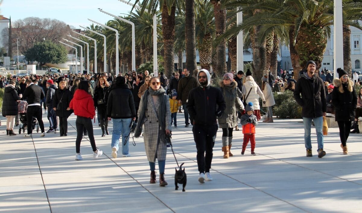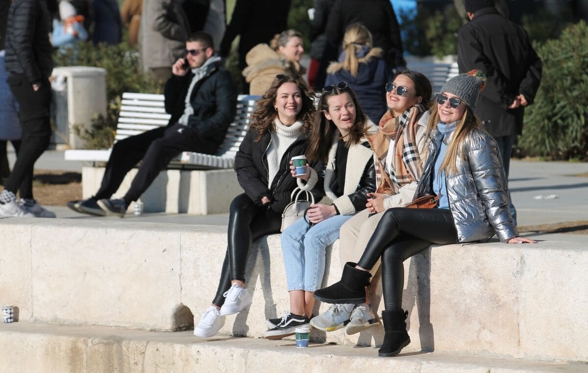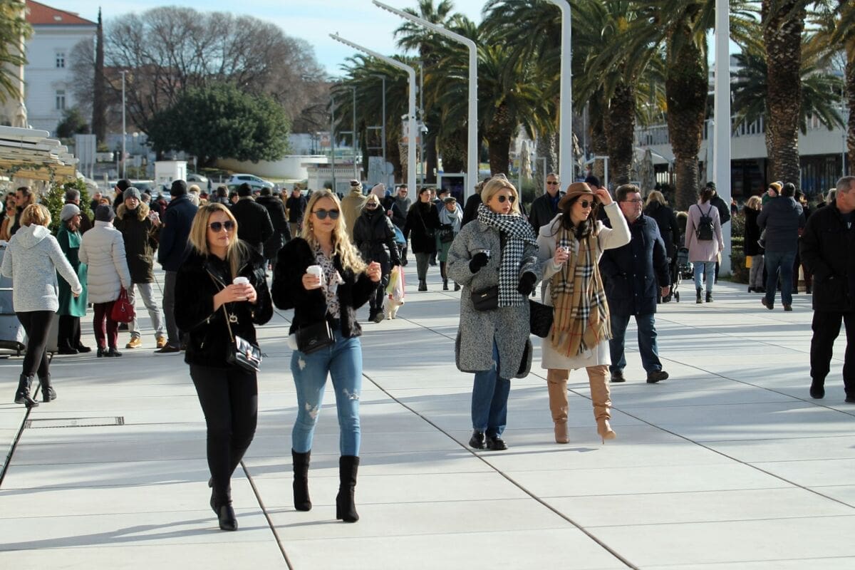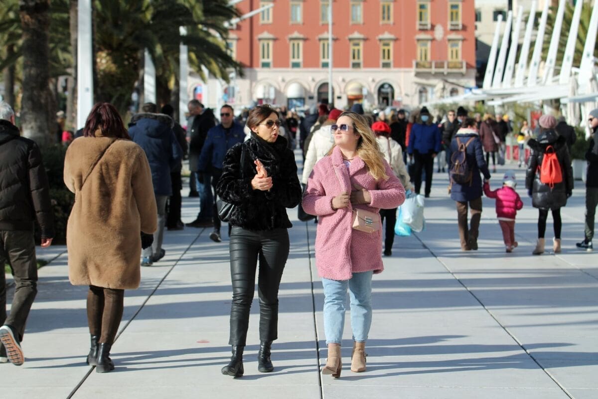 Splitska Riva i danas je bila puna ljudi, unatoč buri i niskim temperaturama. Ništa to ne smeta, važno je napravit đir i popiti kavu. A ima li bolje lokacije za to od centra grada?!