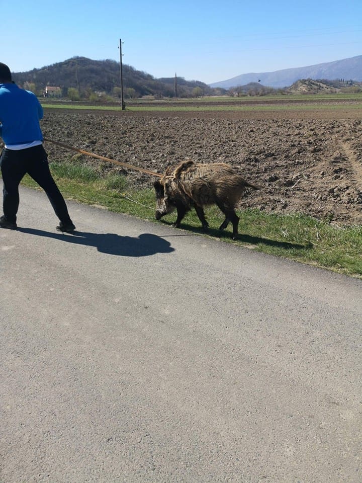 Popularna Facebook stranica "Dnevna doza prosječnog Dalmatinca" danas je objavila fotografiju s nekog sela na kojoj se vidi kako muškarac na uzici šeta ni manje ni više nego vepra.