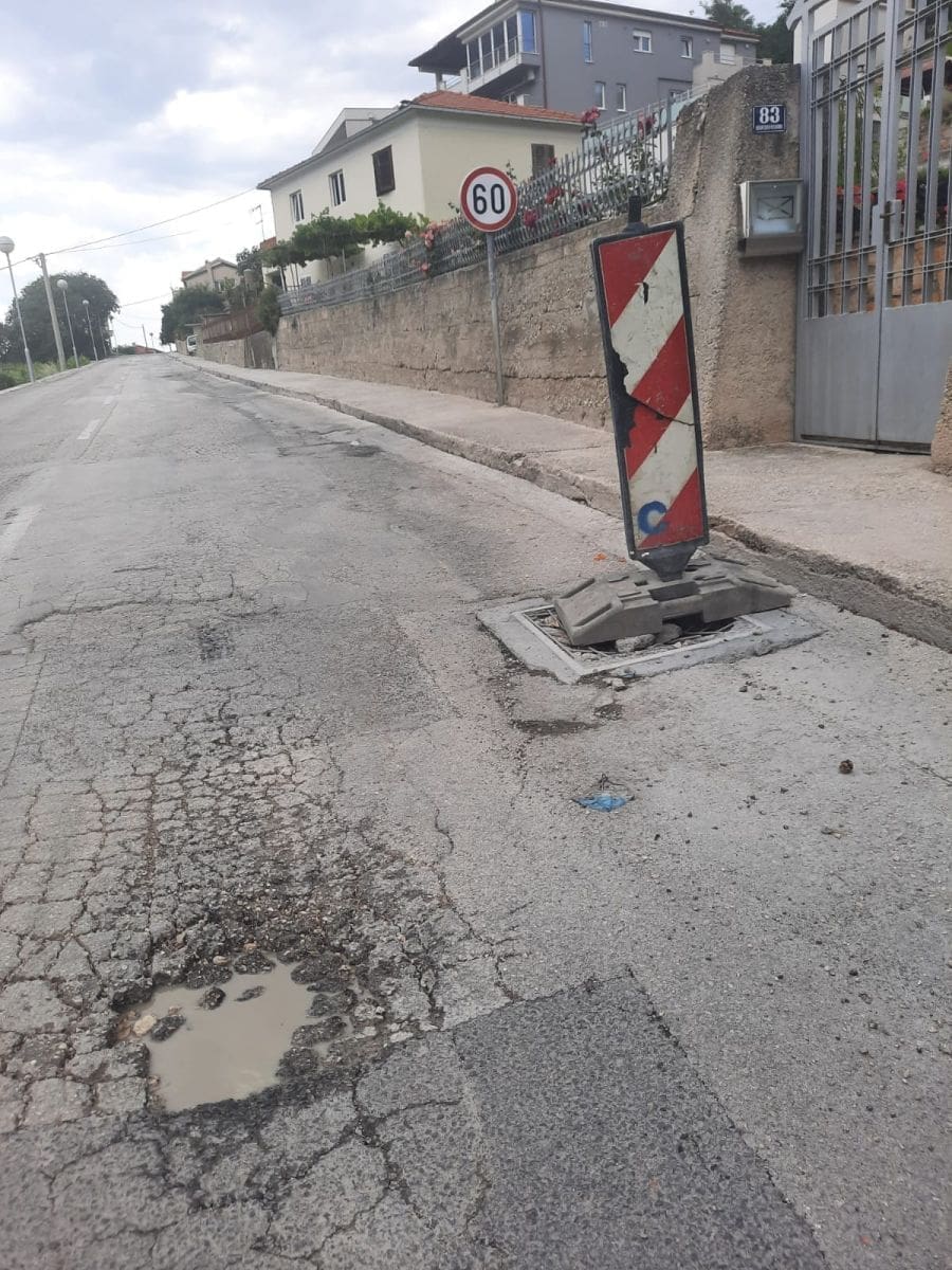 Oštećeni šaht u žrnovačkoj Ulici Hrvatskih velikana, već mjesecima stoji nesaniran. Postavljanje vertikalne signalizacije naizgled je zadovoljilo nadležne, no stanovnici Žrnovnice uvelike se bune zbog navedene situacije.