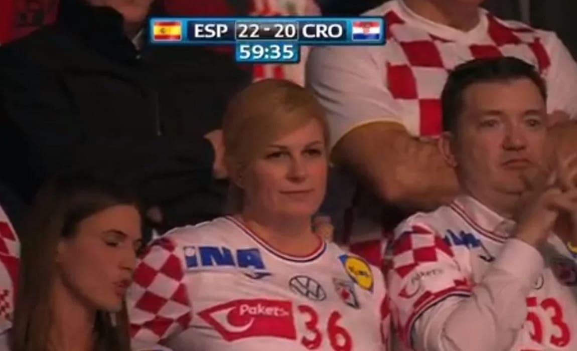 Kad su Španjolci zabili za 22:20 i tako uništili snove Hrvatima, predsjednica je razočarano gledala prema terenu, a sretan nije bio ni Jakov.