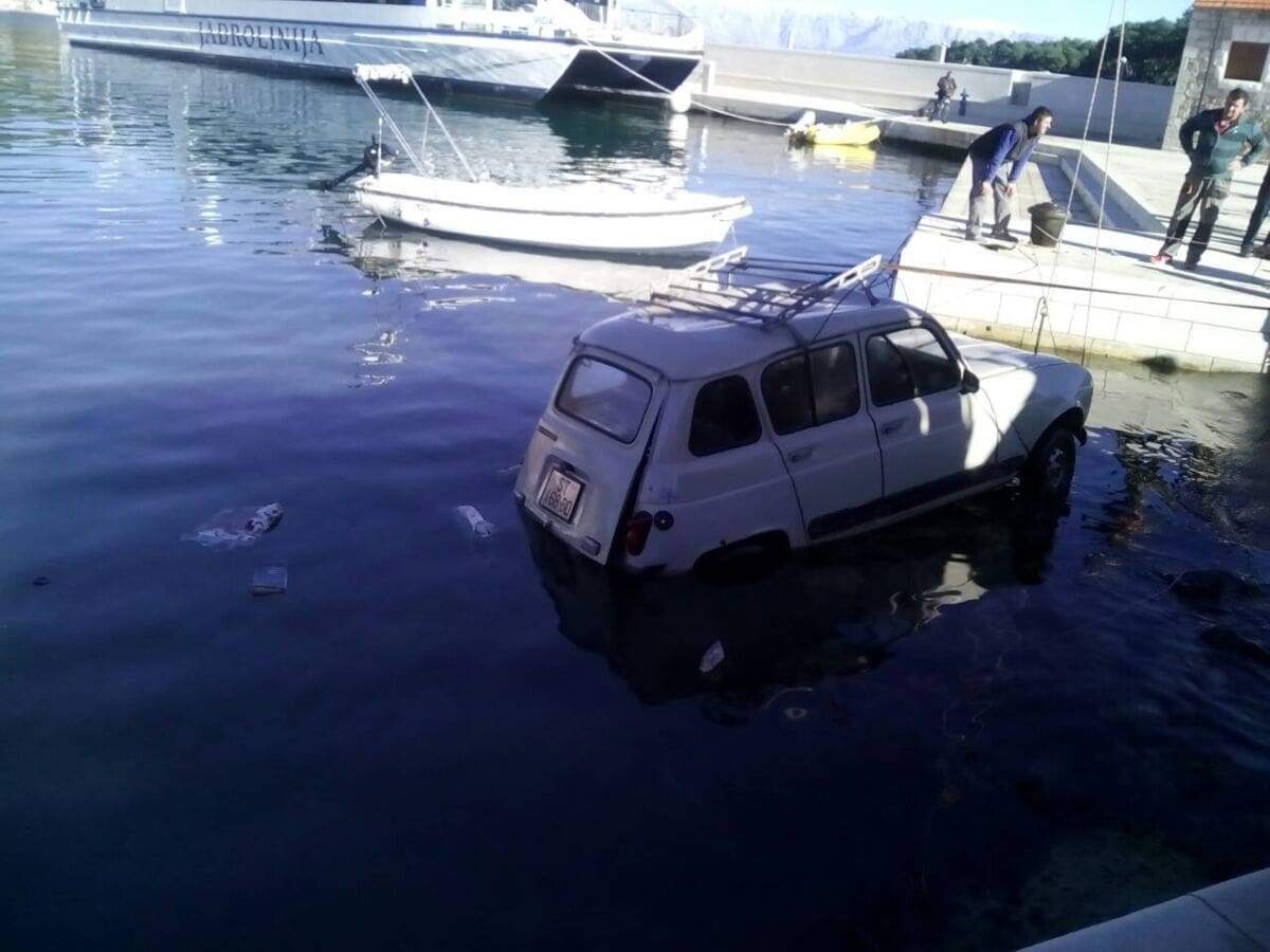 Jutros nezgoda u luci u Jelsi na otoku Hvaru. Osobni automobil marke Renault 4 završio je u moru! Kako nam javljaju čitatelji, kočnice "četvorke" su popustile pa je automobil s rive završio u moru.