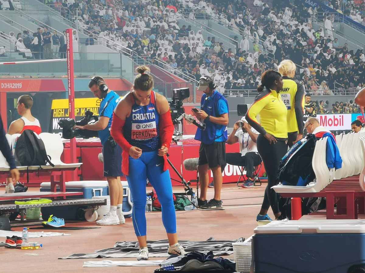 Sandra Perković nije uspjela obraniti naslov svjetske prvakinje u bacanju diska osvojen prije dvije godine u Londonu, ali je u na stadionu Khalifa u Dohi upotpunila kolekciju odličja sa svjetskih prvenstava osvojivši brončanu medalju hicem od 66,72 metara ostvarenim u prvoj seriji finala, dok su zlato i srebro osvojile Kubanke Yaime Perez i Denia Caballero.