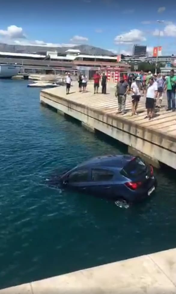 Automobil je neko vrijeme plutao na moru, a potom je potonuo. Svjedoci kažu da je vozač bio neoprezan i da nije povukao ručnu kočnicu.