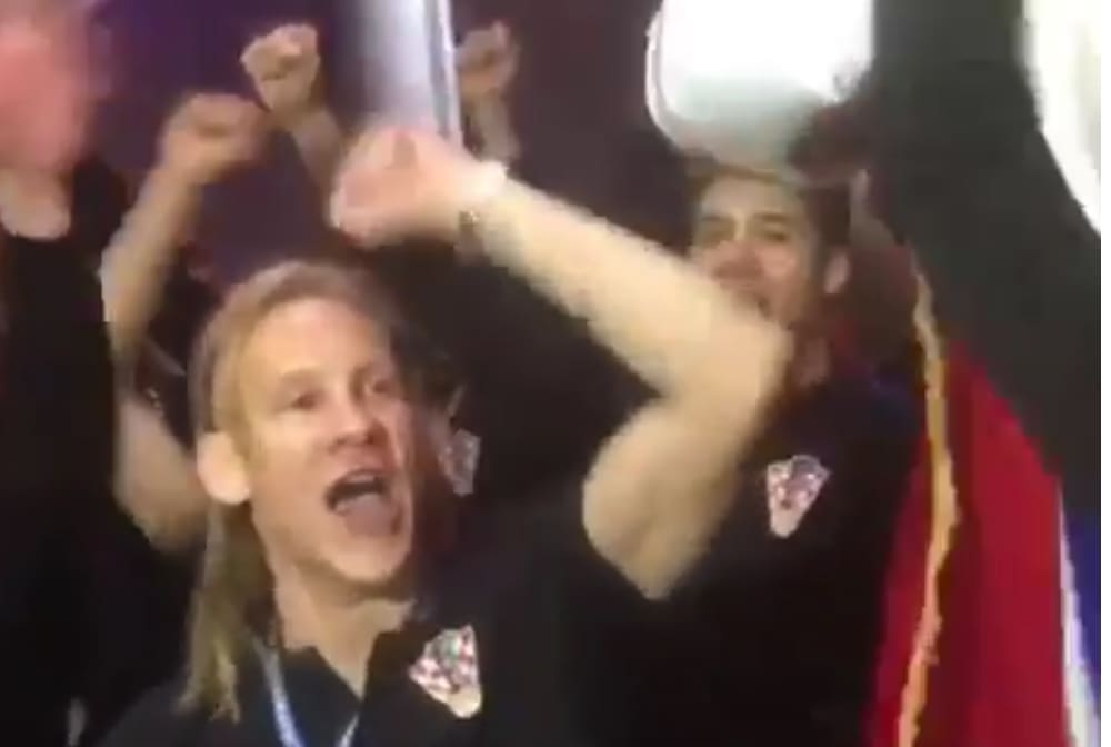 Nešto kasnije objavio je i video, najvjerojatnije snimljen ispred hotela, u kojem igrači zagrljeni skaču i pjevaju "Moja domovina".