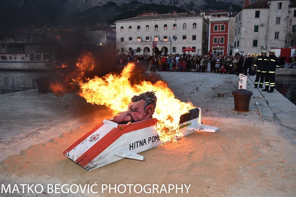 Nakon predstavljanja, prijeki karnevalski sud, a drugog kažu maškare i nema u Makarskoj, presudio je Krnji – hitnoj pomoći i najodgovornijem za zdravstvo, za sve nedaće koje su Makarsku snašle s Domom zdravlja spalivši ga na velikom mulu.