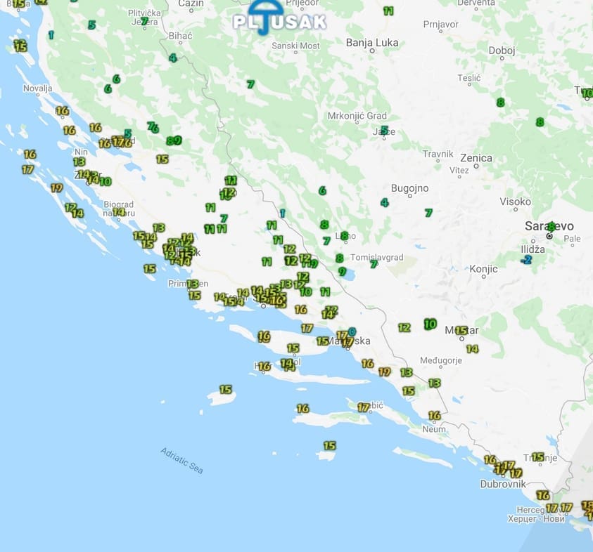 U Dalmaciji su najviše dnevne temperature bile od 17 do 23°C, a još samo prije nekoliko dana prelazile su ponegdje i vrućih 30°C.