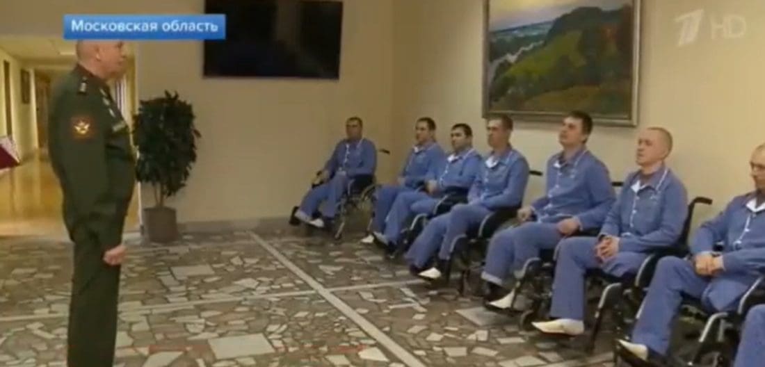 Russian state television broadcasts footage of “special operation” veterans being awarded medals. They actually showed young men who’ve lost their limbs in the war. pic.twitter.com/BRBCUvo2PK