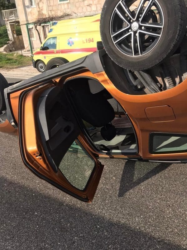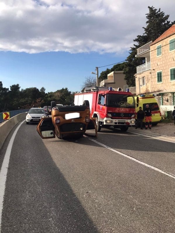 NESREĆA KOD BAŠKE VODE Auto završio na krovu, intervenirali i vatrogasci