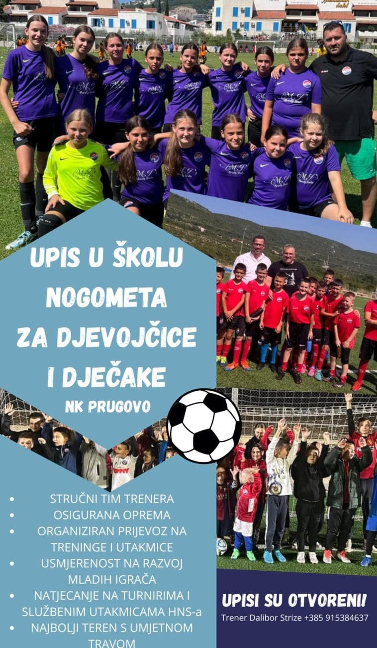 Nogometni klub Prugovo najavljuje početak upisa dječaka i djevojčica u sve uzraste za novu sezonu. Klub i ove godine nastavlja ulagati u kvalitetan rad s mladima, osiguravajući svim polaznicima odlične uvjete za treniranje i razvoj.