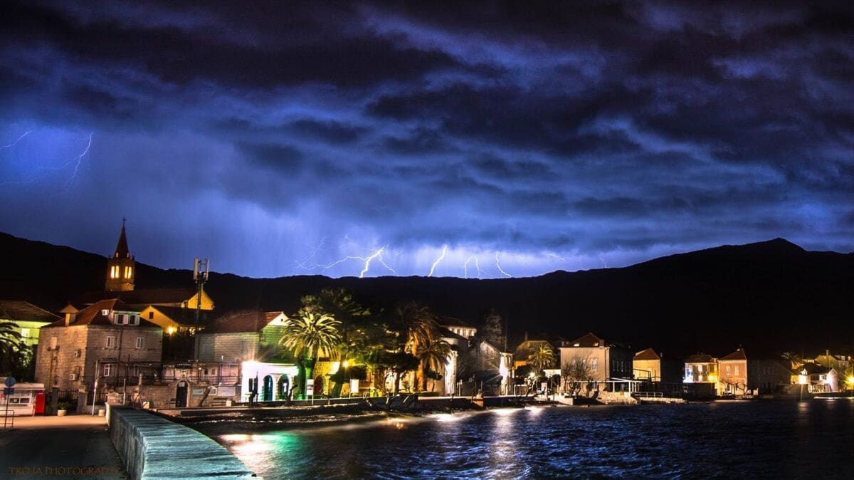 Sustav grmljavinskih oblaka kretao se od Pelješca prema dolini Neretve. Vrijedni lovci na oluje, članovi Crometeo tima (Matko Suton i Ivica Trojanović) snimili su atraktivne noćne snimke nevremena iznad Orebića i Ploča.