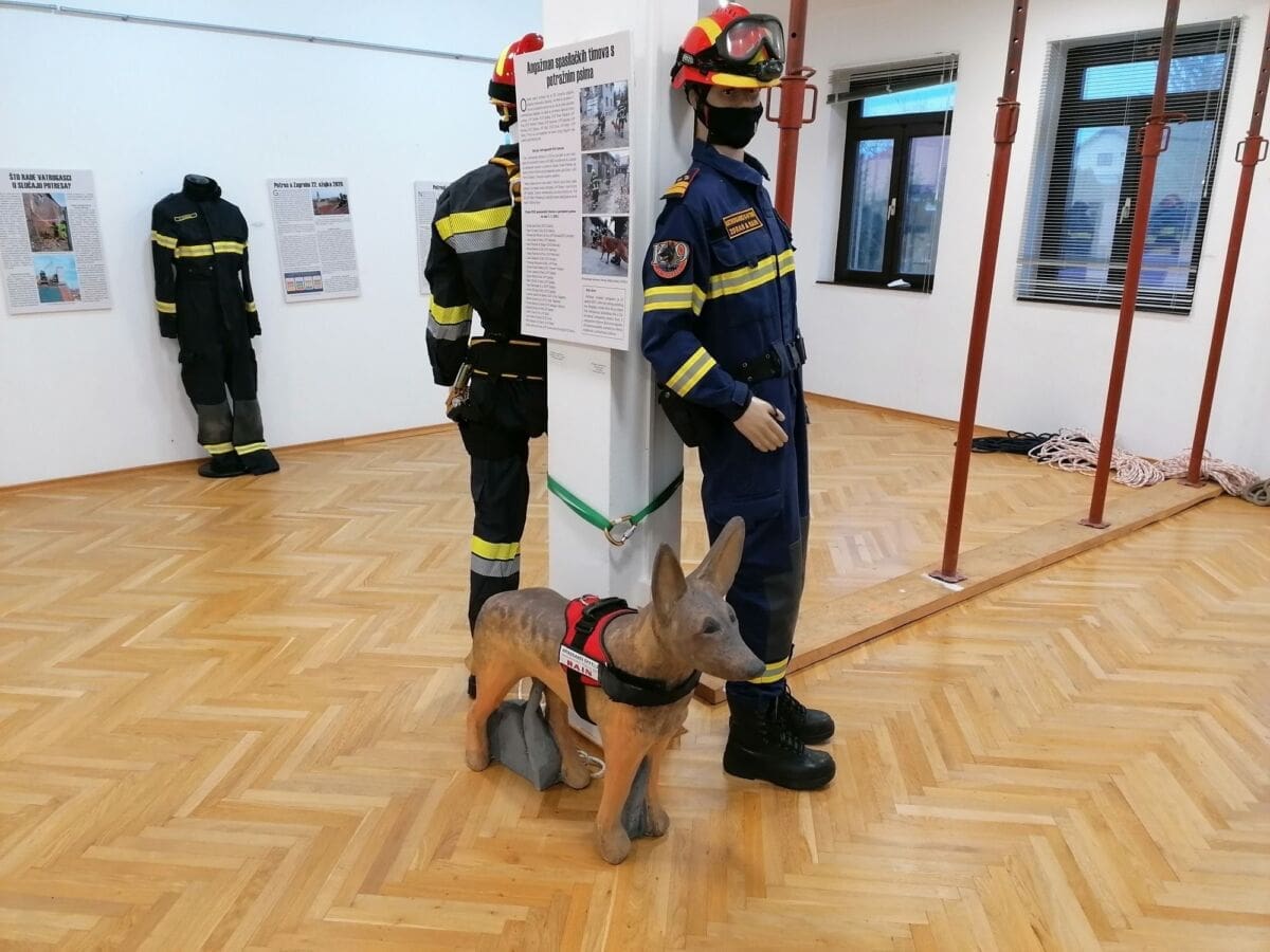 Ova izložba nije postavljena samo u virtualnom okruženju. U Muzeju su uz fotografije postavljeni informativni plakati, ali i odore i oprema koju su vatrogasci koristili na intervencijama. Za potrebe izložbe vatrogasci JVP Grada Varaždina su simulirali podupiranje na dijelu stropa u izložbenoj galeriji.