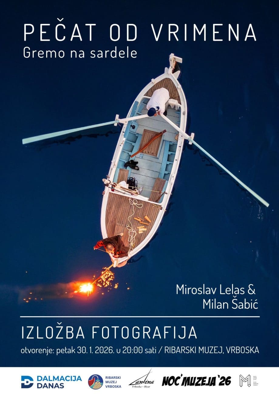 U sklopu Noći muzeja bit će predstavljena i fotografska izložba „Pečat od vrimena – Gremo na sardele“, autora Milana Šabića i Miroslava Lelasa, čije je otvorenje predviđeno u 20 sati. Izložba donosi vizualno uprizorenje ribolovne akcije kakva se nekoć odvijala uz sudjelovanje ribarske družine raspoređene na više brodova, s jasno definiranim ulogama svakog člana posade.