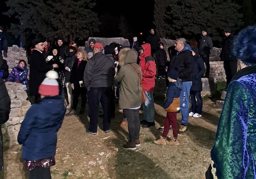 Noć muzeja završila je na najbolji mogući način – Šetnjom s don Franom. U toj igrano dokumentarnoj predstavi, Nino Švonja, kustos epigrafičke zbirke Arheološkog muzeja, uz pomoć glumaca Nike Petrović, Franje Đakovića, Andree Majica, Matka Elezovića i Ivana Medića oživljava lik neumornog don Frane Bulića i vodi nas u vrijeme u kojem je živio. Koliko su u tome uspjeli najbolje svjedoči činjenica da je 40-ak posjetitelja sat i pol vremena šetalo po Saloni usprkos buri i ledena 4 stupnja. A svi maleni posjetitelji, kojima hladnoća nimalo nije smetala, bili su složni u tome kako im je sve, ama baš sve, bilo super.