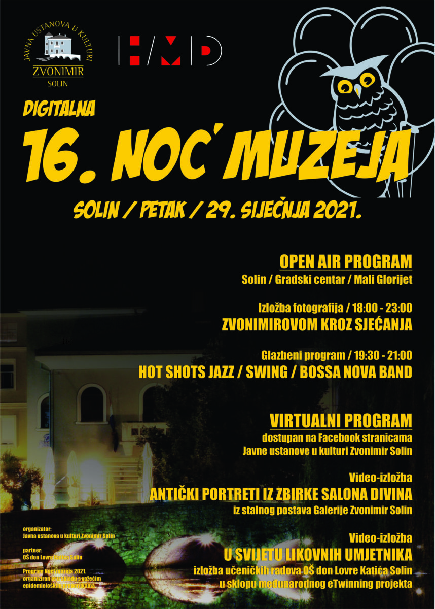 S obzirom na specifične uvjete, ovogodišnju 16. po redu Noć muzeja Javna ustanova u kulturi Zvonimir Solin priređuje u dva dijela.