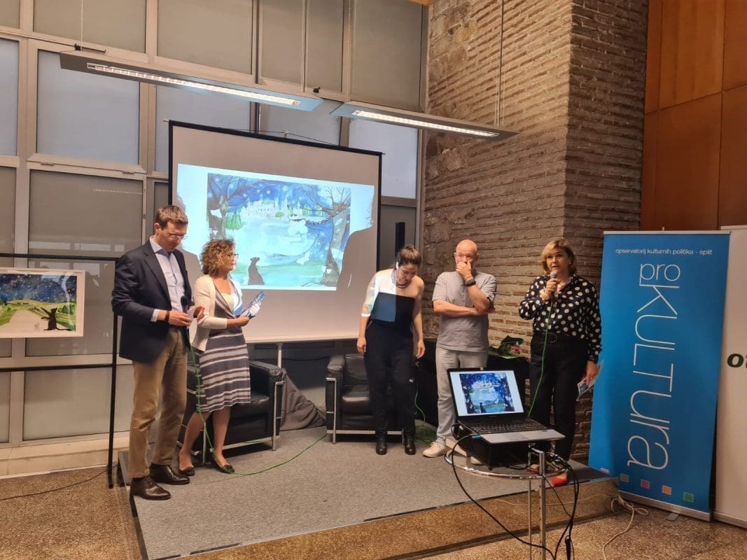 Sinoć je, pod pokroviteljstvom OTP banke, u Kući jezika i kulture na Peristilu otvorena izložba ilustracija "Noć na zemlji" autorice Jasmine Kosanović. Također je promovirana slikovnica istog naziva.