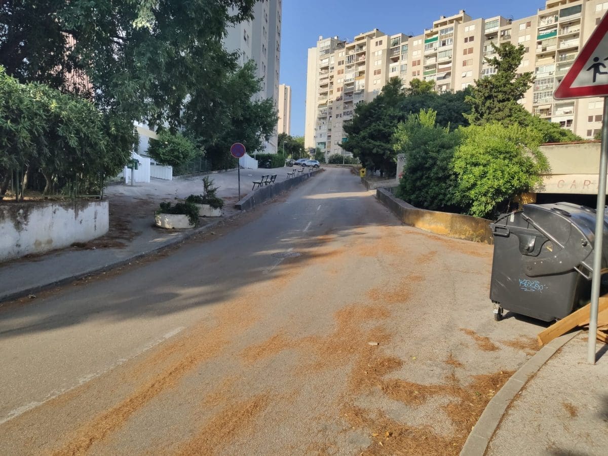 Gdje god postoji borovina uz prometnice, vjetar je na kolnik nanio velike količine borovih iglica. Takvo je stanje jutros i na splitskim Pujankama: