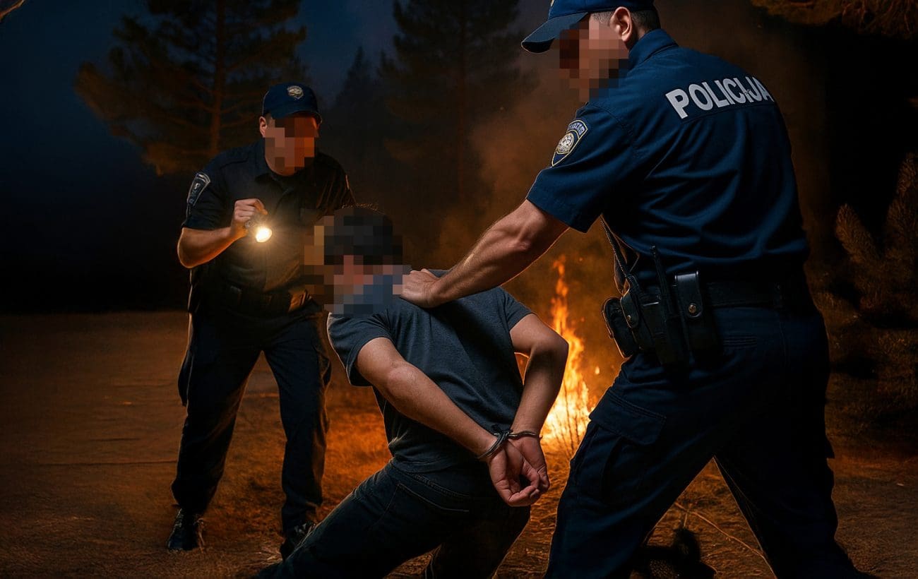 Dolaskom na mjesto događaja, policijski službenici su uočili muškarca koji se pokušavao udaljiti iz neposredne blizine požarišta. Kada je primijetio policajce, pokušao je pobjeći, ali je ubrzo uhvaćen. Kako je priopćeno iz Policijske uprave splitsko-dalmatinske, muškarac se dovodi u vezu s izbijanjem požara, zbog čega je odmah uhićen i priveden u službene prostorije.