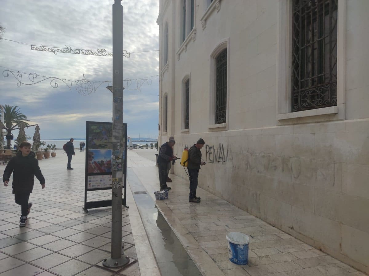 Čini se da će sve vrlo skoro sve biti prebojano, radnici su već u akciji. Velika je vjerojatnost da ih premijer Plenković koji dolazi u Split neće vidjeti.