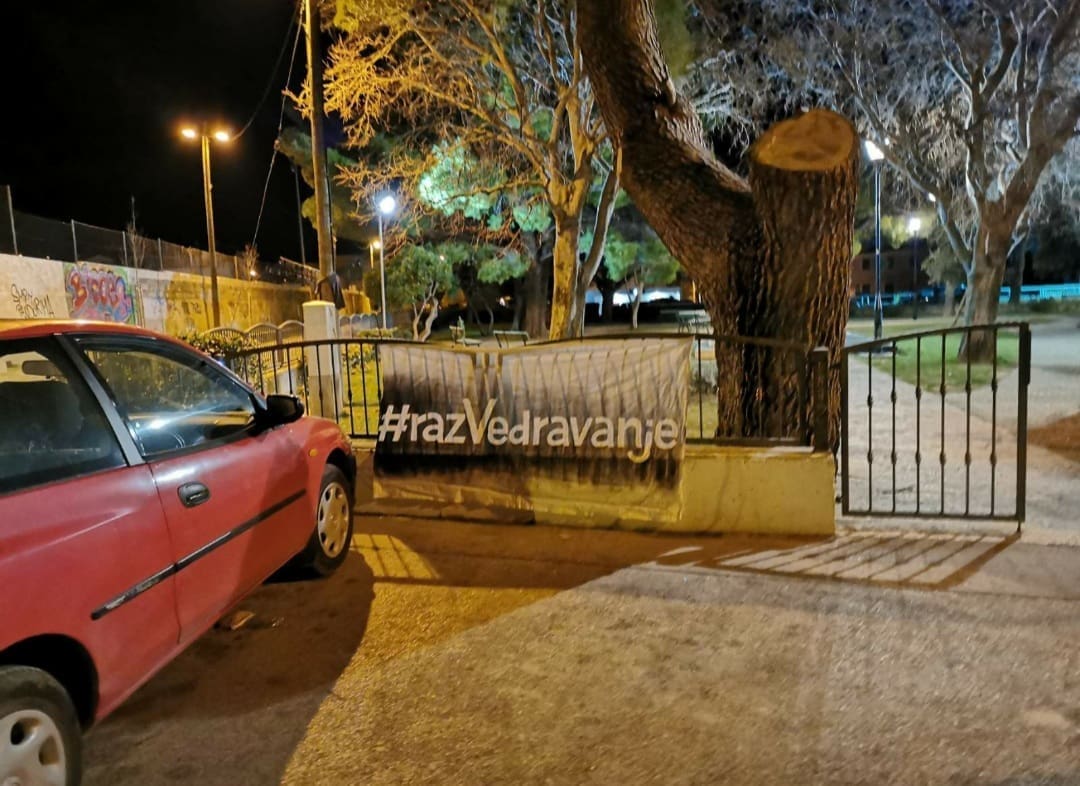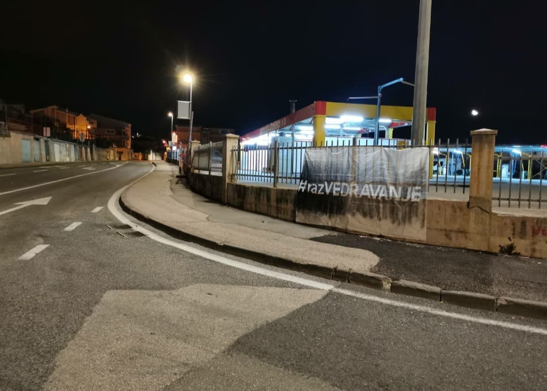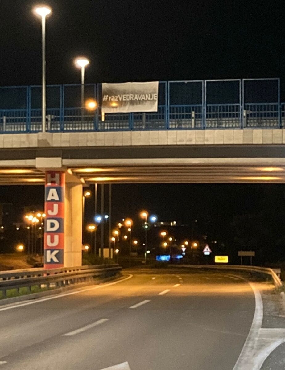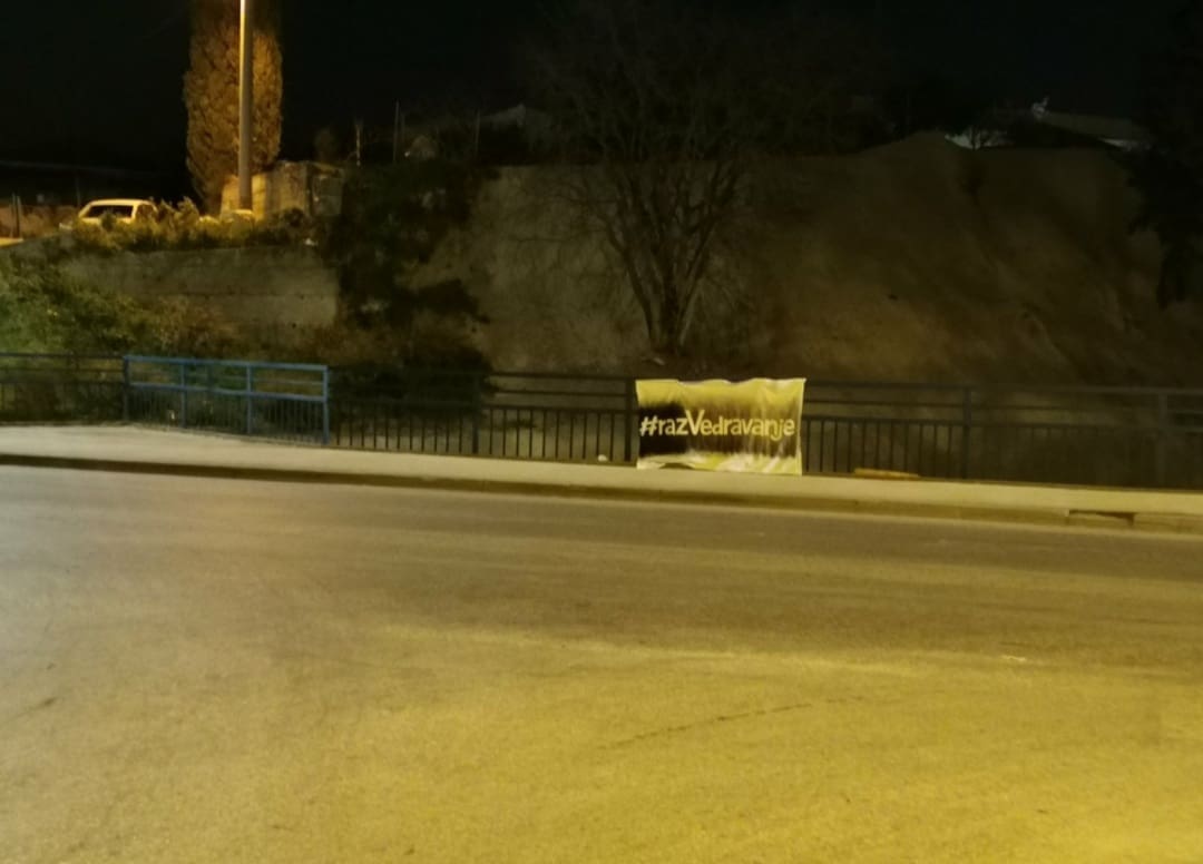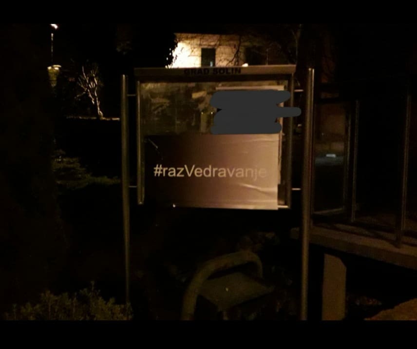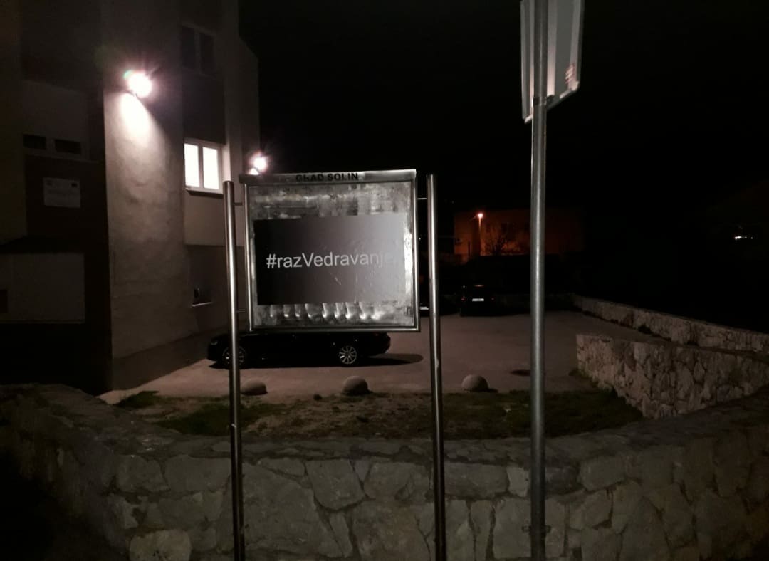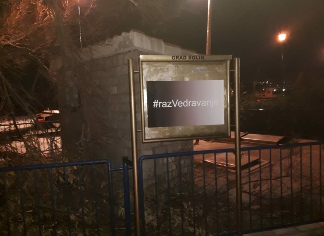 Protekle noći na području cijelog Solina osvanuli su transparenti i plakati koji imaju identičnu poruku "#razVedravanje". Tako su transparenti postavljeni na nadvožnjaku, po autobusnim stanicama, ogradama...