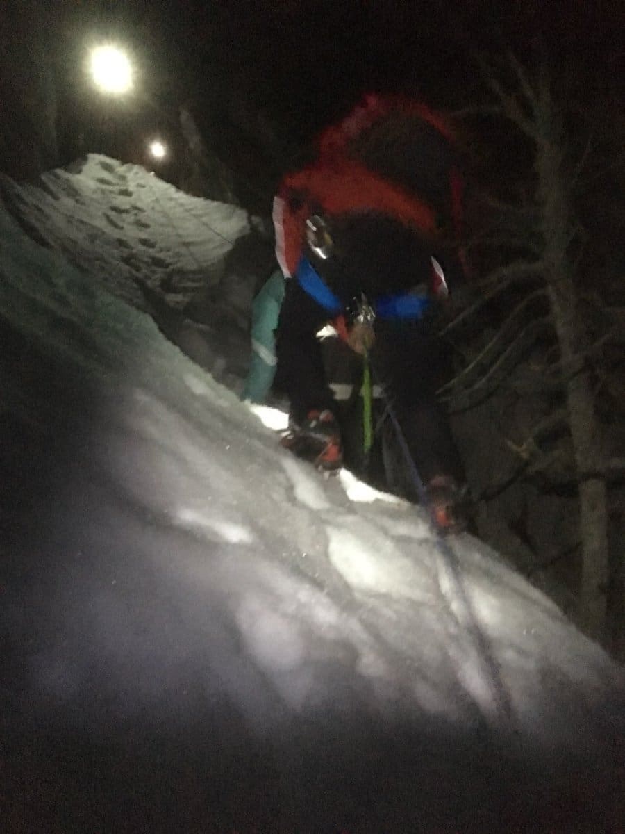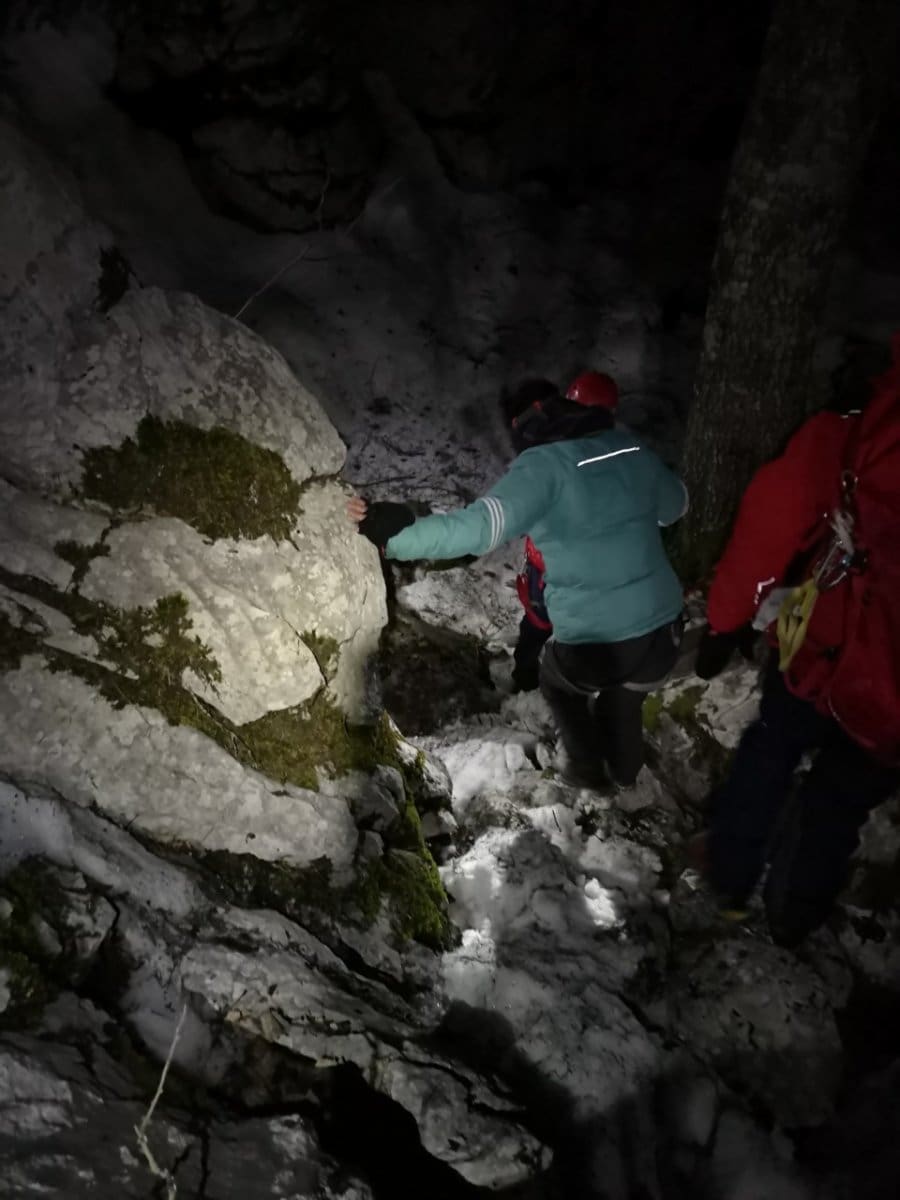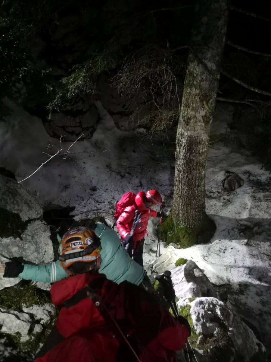 Do planinara su stigli oko 1.45 sati, i otpočeli akciju spašavanja. Jedan planinar je već bio u dosta lošem stanju, iscrpljen i vidno pod stresom, pa je ekipa HGSS-a na svakoj strmini spuštala navezanu, služeći se gelenderima, sidrištima i izradom stepenica u ledu.