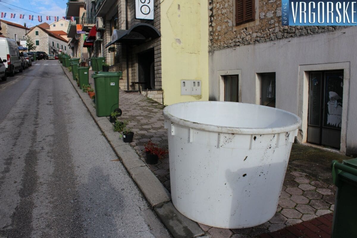 Kako je ove godine "ulov" cvijeća očito bio nešto siromašniji, noćni aktivisti su morali biti kreativni, pa su po cijelom Vrgorcu skupljali kante za komunalni otpad i dogurali ih na Pijacu. Radi se o više desetaka kanti od kojih tek na nekima piše ime vlasnika, dok će ostale pomoću kod morati očitati Gradska Čistoća.