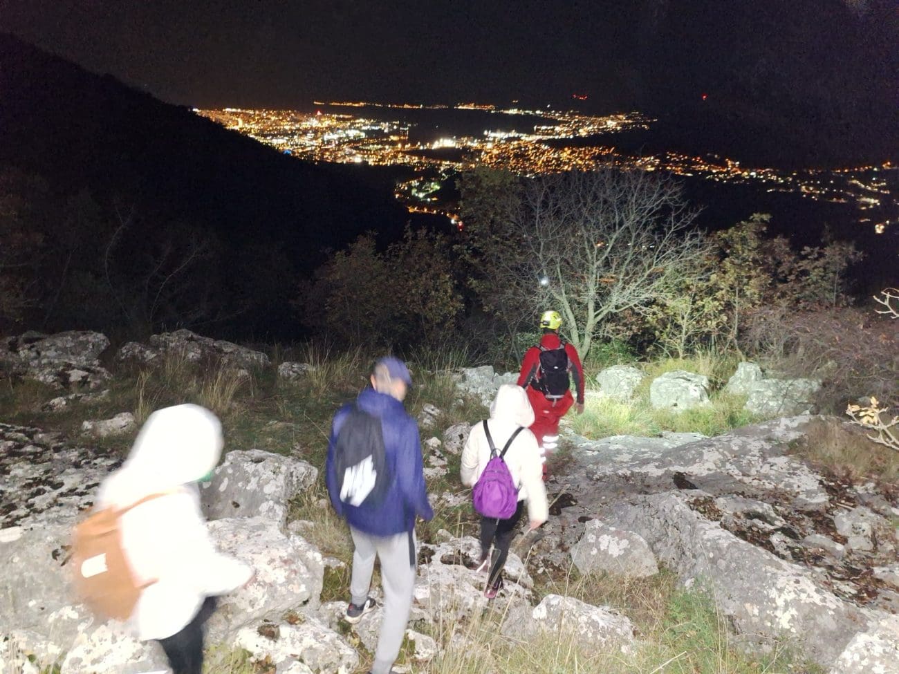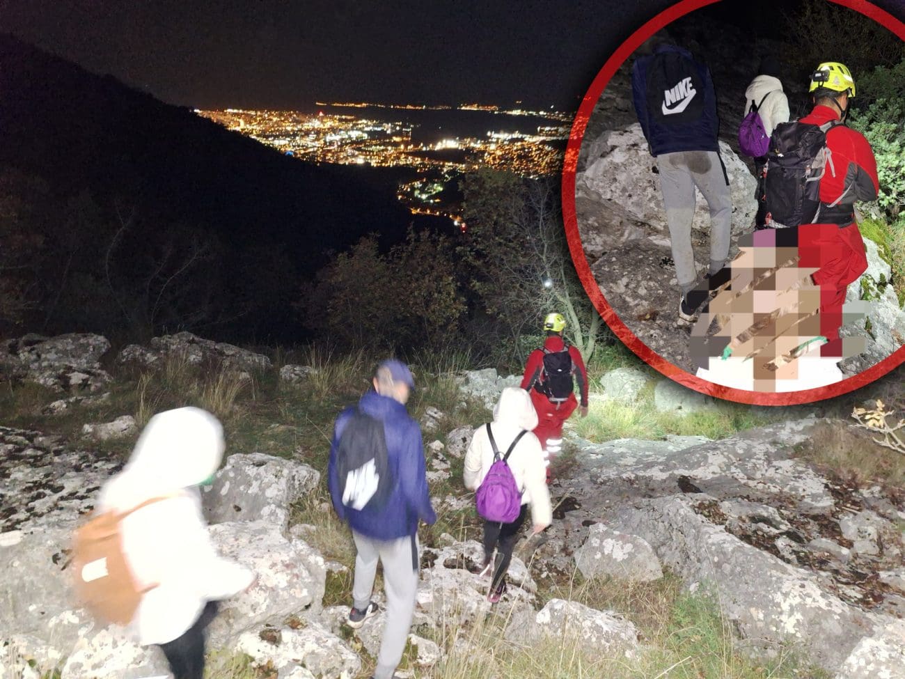 Kako je dan odmicao, mrak je brzo pao, a teren se pokazao iznimno težak za kretanje. Oko 20.30 sati spašavatelji su uspjeli pronaći izgubljene planinare koji su bili dezorijentirani, iscrpljeni i pothlađeni, smješteni na vrlo nepristupačnom dijelu stijena i lomova. U akciju se uključio i lokalni lovac, dobro upoznat s konfiguracijom terena, čija je pomoć bila ključna za siguran prolaz prema nižim, prohodnijim dijelovima planine.