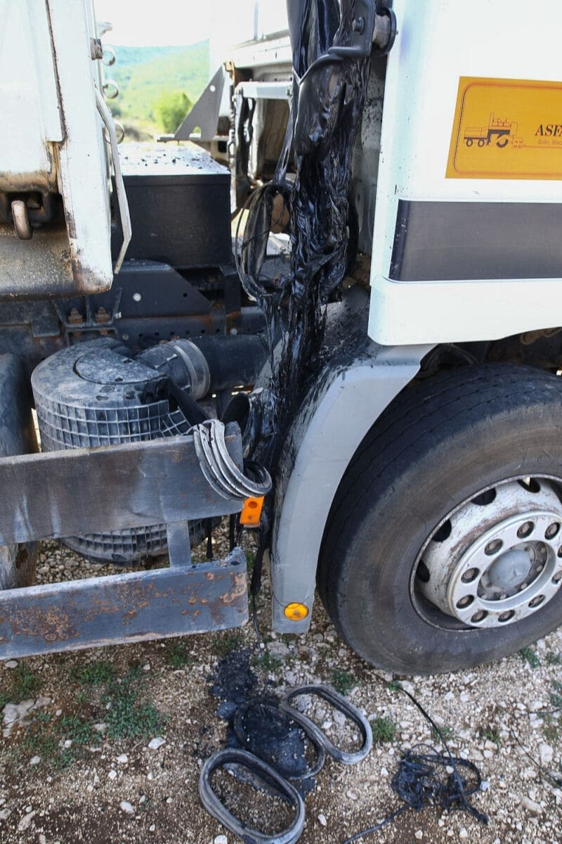 Pogasili su tako i obližnje kontejnere, a onda krenuli u akciju gašenja požara koji je izbio na tri kamiona. Kamioni su bili parkirani u ulici Domovinskog rata, a u požaru su nagorjeli plastični dijelovi, gume i dio kabine. Obzirom da kamioni nisu bili parkirani jedan pored drugoga, požar se nije mogao proširiti s kamiona na kamion. Neslužbeno, radi se paležu.